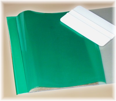 Using a soft squeegee, adhere the entire edge of exposed adhesive to the raised lip of the lamination carrier.If you are not using a carrier, adhere the film to the leading edge of the copperclad substrate you are coating. Please note that you may not be able to use this pre-laminated section of the film for circuit imaging as a result of wrinkles and/or trapped air bubbles.