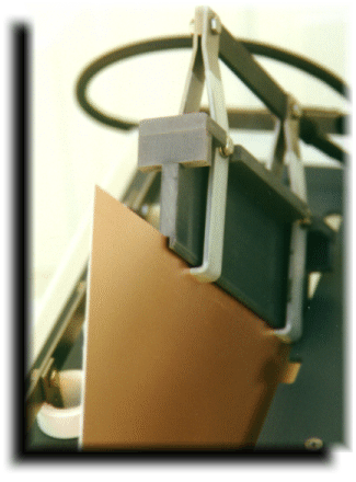 ![]() Think & Tinker cathode clamps are constructed of 0.125" x 0.75" 316 stainless steel flat stock to insure years of use in a full production environment. They are designed to carry 100 amps of plating current without a significant voltage drop (less than 0.050 V) or excessive resistive heating. The insulated handle provides a convenient grip for lifting a panel out of the bath or for holding a panel up to the light for close inspection. The sturdy PVC body is equipped with a 0.25" deep slot to anchor the clamped edge of the panel being plated. ![]() Heavy duty clamp fingers extend into the bath and act as heat sinks to keep the handle at, or near the temperature of the electrolyte. Positive clamping action is provided by stainless steel hex bolts acting against the natural springiness of the stainless steel flat stock. The fingers are attached to the top buss bar through smooth ground contact pads to insure high-current, low-resistance connectivity. The clamp is connected to the plating current source through high flexibility #4 AWG welding cable rated for 100 amps continuous duty. |
