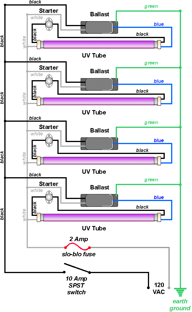 - Use AWG 12 wire to interconnect adjacent ballast/starter/tube sets.