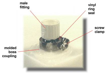 Acid-Copper Electroplating Module Model 1000 ManualMaintenance - Fixing a Leaky Connection Maintenance So. You thought you were through learning how to use your new plater, huh? Fat chance. I get paid by the word and I have lots of words. Let´s to learn how to fix the unit if necessary and to maintain the electrolyte to insure optimum performance. Fixing a Leaky Connection Based on past experience, it is very unlikely that you will ever have to repair a leak in this system. All of the joints and fittings are sealed with a specially formulated liquid vinyl (Liquid Duct Tape®, LDT®) that stays flexible and resists the corrosive effects of the etchant. Nonetheless, it is beneficial to take a look at how each threaded connection is made so that you can repair or replace a fitting if necessary. For the sake of demonstration, assume that one of the threaded connections has sprung a leak. Put on your safety glasses and chemical resistant gloves. ![]() Applying LDT to a female fitting Figure 18 ![]() Assembled welded-boss fitting Figure 19