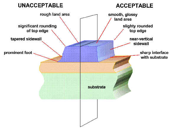 Photopolymer Dry-film Developing ModuleOperation/Resist Image Characteristics Resist Image Characteristics All trace walls should be nearly vertical and should meet the surface of the copperclad in sharp, well defined intersections. The photopolymer surface should be smooth and glossy (after drying) and should meet the trace sidewalls in sharp (or very slightly rounded) edges. ![]() ![]() Resist image characteristics Fig. 6 PREVIOUS