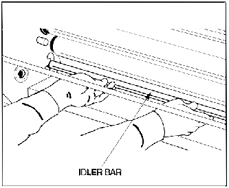- Unroll 2 ft. (61 cm) of film. Push the leading edge under and around bottom film guide. Slide film guide back into place and drape film over the front support for the feed table, (Figure 13).