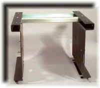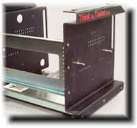 Assembling the Multi-roll Adapter (MRA) The multi-roll adapter has been designed to allow as many as 4 independent rolls of film to be threaded into a Think & Tinker, Ltd. laminator at the same time. This is especially useful when adding an adhesive backing to flex circuitry or a sealing layer to a membrane keyboard. The multiple arrays of holes located in the side and back panels will allow you to mount a host of possible accessories. The rated capacity of 200 lbs. (actually closer to 400 lbs., if the truth be known) should accommodate just about anything you might consider mounting. What ever your application, the many degrees of freedom offered by the MRA will extend the capabilities of your laminator. ![]() mouse over for larger image Locate the bottom plate of the Multi-Roll Adapter (MRA) and remove the 4 screws. Gather up the two black side panels of the MRA. Turn them upside down and slide the bottom plate into the bottom channel on each side. Move the plate to the two rear-most holes and re-insert the screws. The arrow on the bottom of the plate should be pointing to the back of the MRA (the big slots in each side panel faces front) For now, do not tighten the screws. ![]() mouse over for larger image This is a good time to mount the 4 rubber feet to the side panels. These are screwed into the threaded holes on the bottom of each side panel. Only tighten the internal screws enough to cause a slight bulge at the base of each foot. ![]() mouse over for larger image Turn the assembly right side up. Locate the back panel and remove the 6 socket head screws. Mount the back panel to one side panel with the model number label facing forward and in the bottom right-hand corner when the MRA is viewed from the front.