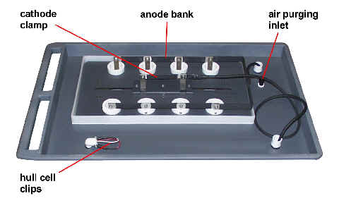 - Set the anode baskets into the anode hanger plate but do not connect to the anode buss (bar connecting the anode baskets). It will be necessary to remove the baskets one final time so leave them free for now.